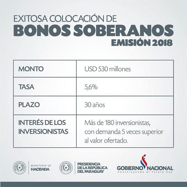 Enfatizó que Paraguay debe aprovechar las tasas bajas de intereses internacionales que obtiene a través de los bonos, lo cual es muestra de la confianza que tienen los inversores.