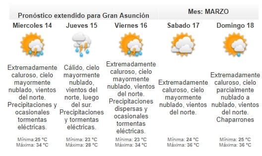 Desde la Dirección de Meteorología anuncian una jornada cálida a calurosa, con alta probabilidad de lluvias dispersas.