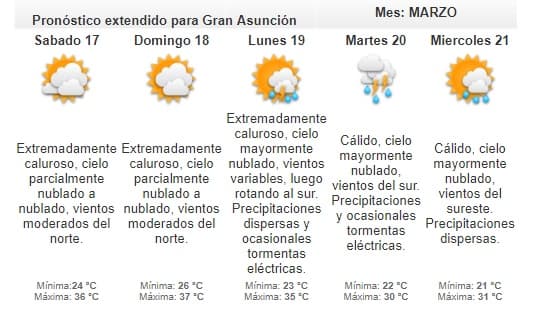 Desde la Dirección de Meteorología anuncian una jornada cálida a calurosa con precipitaciones.