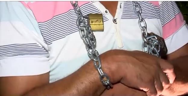 Por dicha razón tomó la medida de encadenarse el pasado 16 de marzo frente a la Fiscalía y acudió hasta la fiscal general del estado, Sandra Quiñónez, quien lo recibió y escuchó sus reclamos.