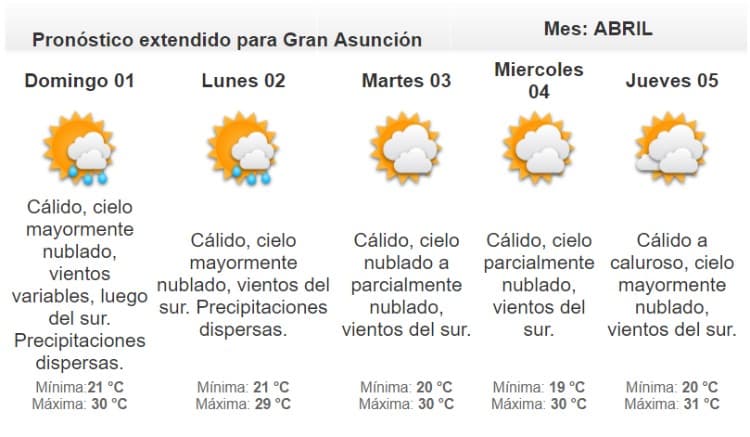 “En consecuencia el ambiente predominante durante estos días sería cálido, con el contenido de humedad elevado”, explicó el meteorólogo de turno, Cinthia Espínola.