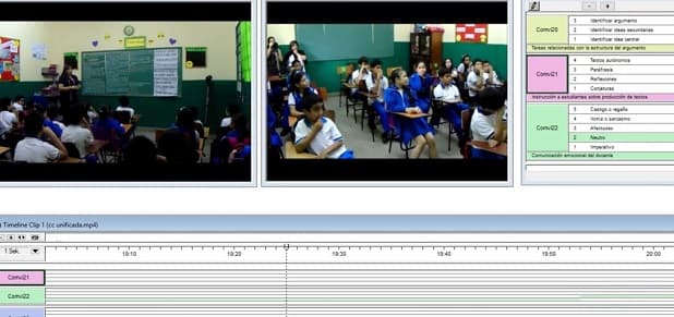 El análisis de las videoclases se realizó mediante el software llamado “Videograph”, que analiza datos cualitativos y proporciona como resultados datos cuantitativos, en tiempo absoluto de la lección y porcentaje de tiempo de la lección.