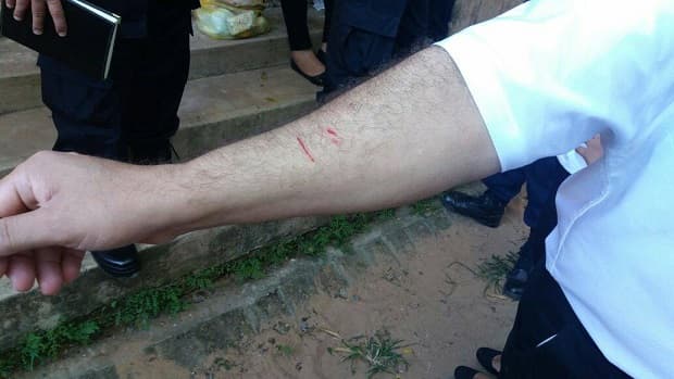 Una mujer agredió al candidato del Partido Colorado, Mario Abdo Benítez, en el colegio República de Panamá. El presidenciable fue arañado en el brazo.