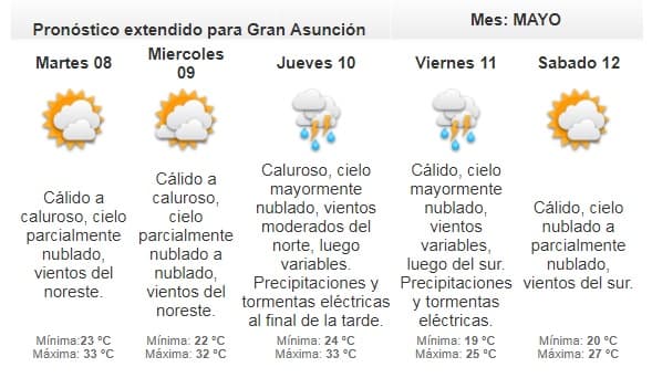 La probabilidad de precipitaciones es leve, y afectaría al oeste del Chaco y sur de la región Oriental.