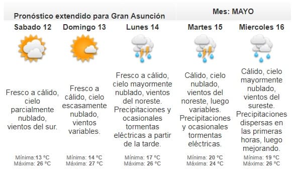 La Dirección de Meteorología anuncia una jornada fresca con alta probabilidad de lluvias y tormentas eléctricas.