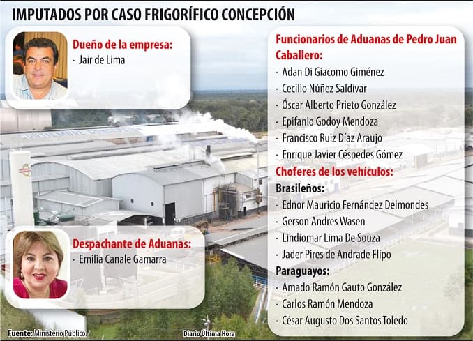 Según menciona el texto de la Fiscalía, los mismos habrían intervenido en la formalización de los despachos de importación que sirvieron de base para el ingreso de los productos cárnicos por el Frigorífico Concepción.