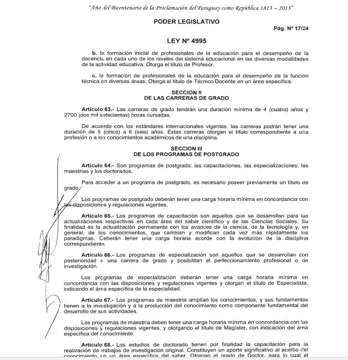 Diplomados no están regidos por ley y no son considerados como posgrados, alerta el MEC