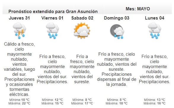 La Dirección de Meteorología anuncia una jornada cálida. Se esperan lluvias para el final del día.