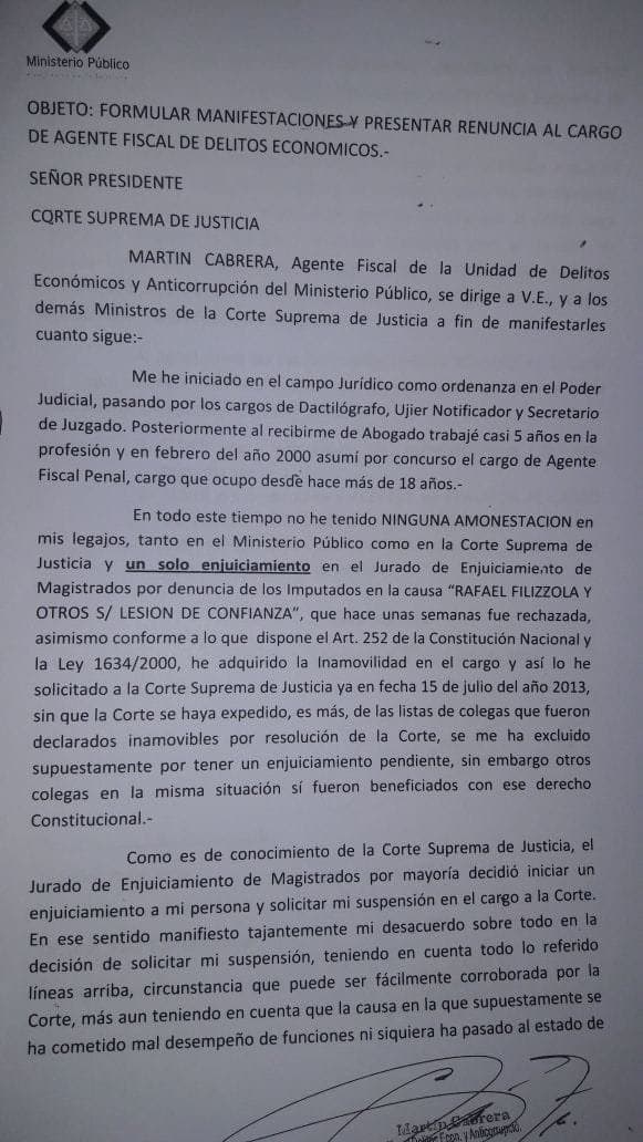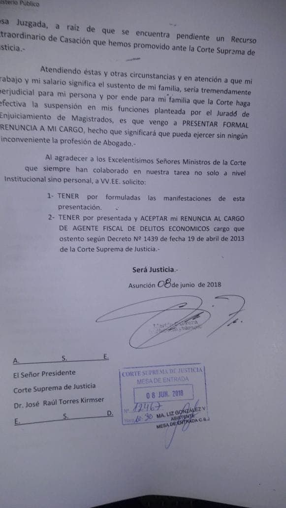 Renuncia del fiscal. Foto: Ñanduti.Renuncia del fiscal.