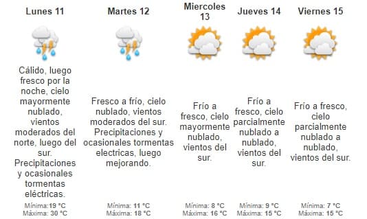Con el ingreso de este frente frío se aguarda un descenso marcado de la temperatura, sobre todo desde el martes, donde el ambiente pasaría de fresco a frio, por lo que gran parte del día de hoy aun seguiría cálido.
