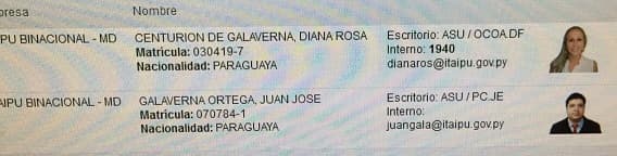 Diana Rosa Centurión de Galaverna, nuera del senador, ya es funcionaria de la binacional y tiene un salario que ronda los G. 28 millones.