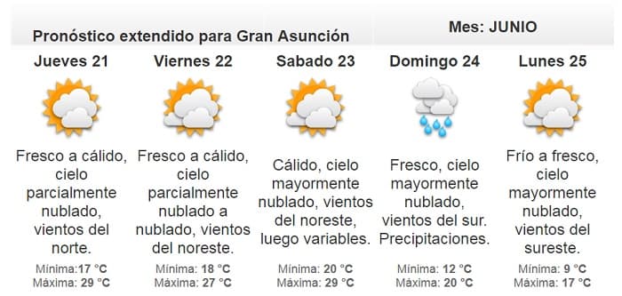 Así mismo, para los próximos continuarán los amaneceres frescos y las tardes cálidas e incluso calurosas en algunos puntos del Chaco, con un aumento de la nubosidad para el viernes.