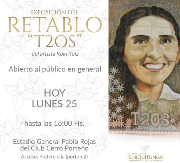 Este lunes las puertas del Estadio General Pablo Rojas se abrirán al público que desee conocer el retablo de María Felicia de Jesús Sacramentado "Chiquitunga". Una multitud de personas no pudo ingresar el pasado sábado a la beatificación, por ello los organizadores habilitarán la muestra.