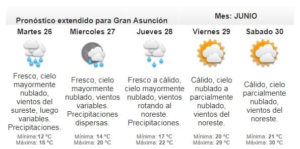 La Dirección de Meteorología anuncia que este lunes será fresco, con el cielo nublado y vientos del sureste.