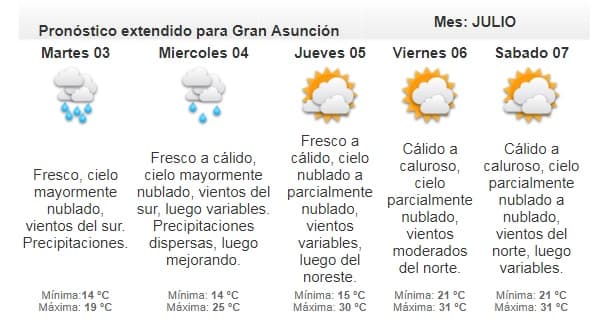La probabilidad de lluvias es baja, sin embargo, se pronostican precipitaciones para el sur del país. La máxima llegará a los 31 grados.