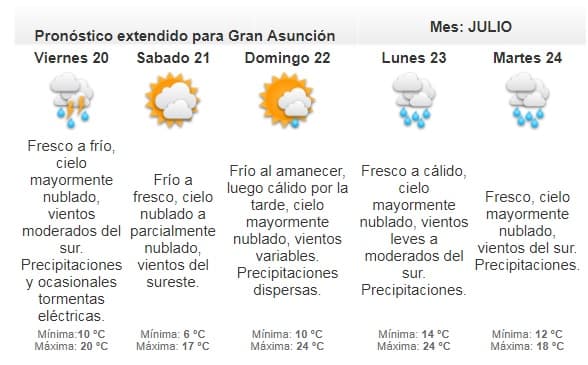 La Dirección de Meteorología pronostica que esta jornada se presentará cálida a calurosa. Los vientos soplarán del sector norte.