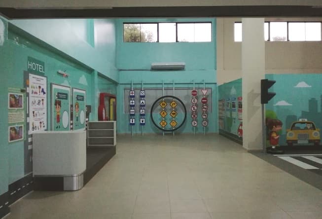 El edificio de instrucción se completa con un circuito de asfalto, semáforos y señales de tránsito, simulando ser una calle, donde con karting, donados por el Gobierno de Corea, los niños pueden realizar las prácticas en materia vial.
