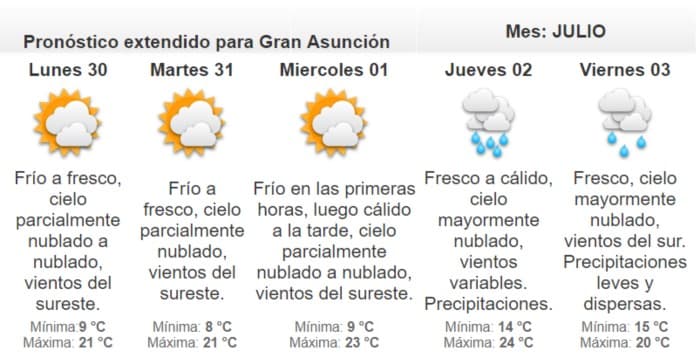 Desde la Dirección de Meteorología anuncian bajas probabilidades de lluvia para este domingo.