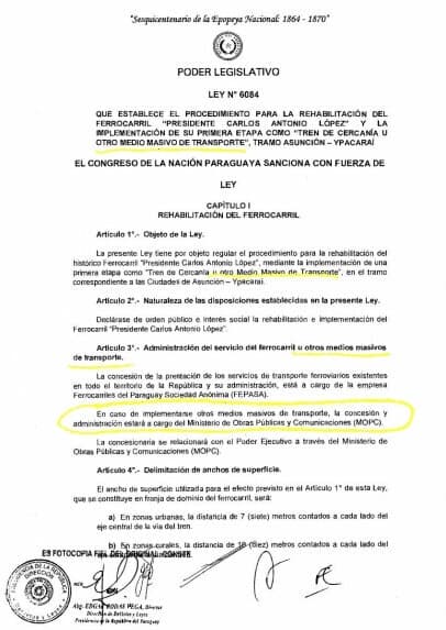 El abogado Luis Jara Miranda, presidente de la Cooperativa Multiactiva de Servicios Ferroviarios "Pdte. Carlos Antonio López", manifestó que desde Ferrocarriles del Paraguay SA (Fepasa) se cometen constantes atropellos. Sostuvo que el traslado de la locomotora 54 a Pirayú es un atentado contra el ferrocarril. La verdadera intención del ente es concretar la obra de metrobús y no del tren de cercanías, afirmó.