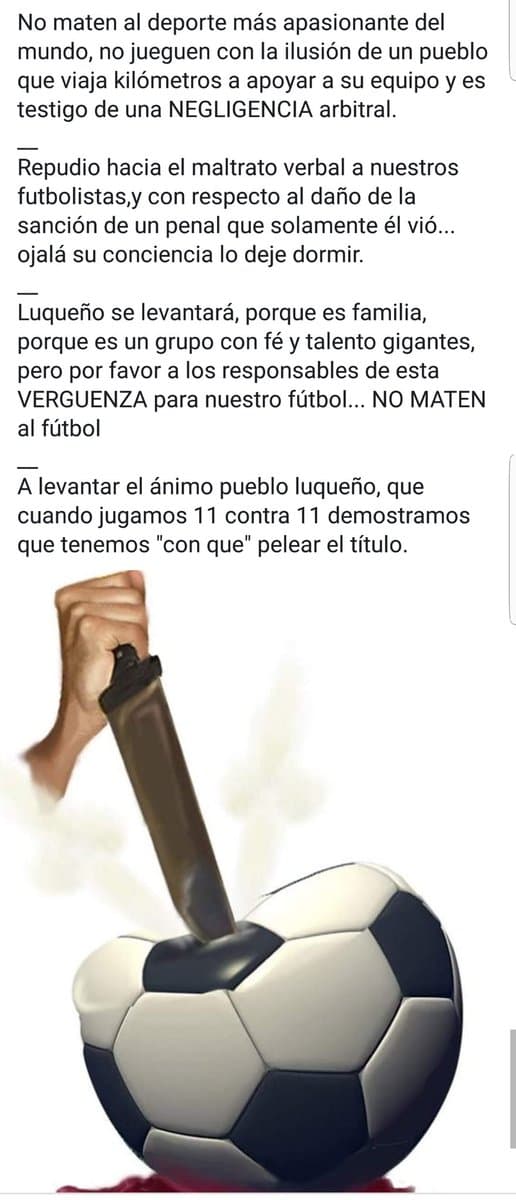 El Sportivo Luqueño emitió un fuerte escrito en sus redes sociales luego de perder ante Olimpia en el este del país. “No maten al fútbol”, señala entre otra cosas.