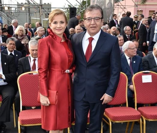 Lourdes María Andrea Samaniego, esposa del vicepresidente de la República, Hugo Velázquez, utilizó un traje corto, de color blanco, sobrio, elegante con detalles de bordados.