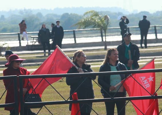 Tampoco estuvo ausente la bandera del Partido Colorado, que flameaba en manos de algunos de los presentes, tanto de los que estaban en el Litoral, como también los que observaban tras de las vallas en la Costanera de Asunción.