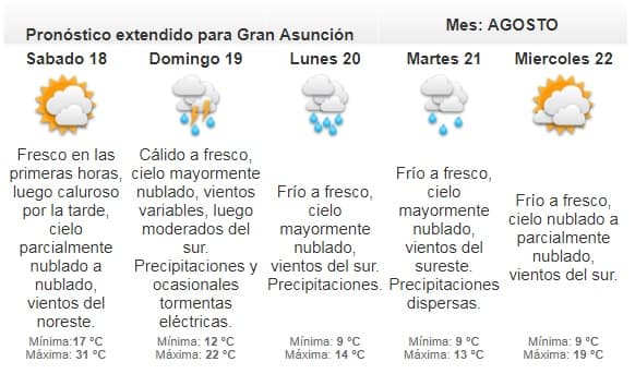 Para este viernes se estima una mínima de 14 grados y una máxima de 27. El cielo se presentará escasamente nublado, y los vientos soplarán del sector noreste.