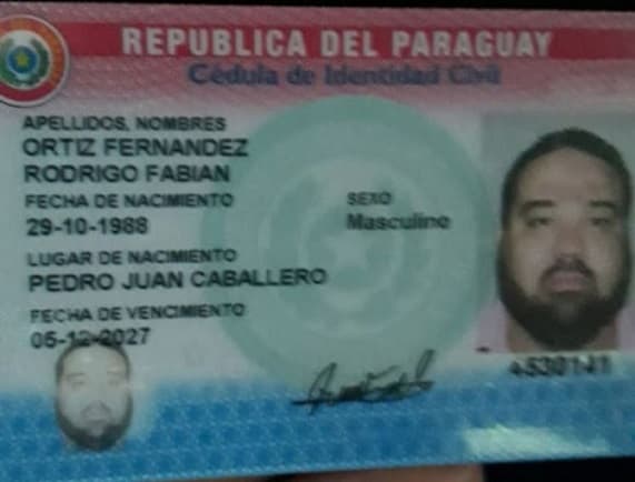 El supuesto ideólogo del crimen fue identificado como Rodrigo Fabián Ortiz Fernández, de 29 años, oriundo de Pedro Juan Caballero, pero residía en Fernando de la Mora, donde fue detenido este viernes.