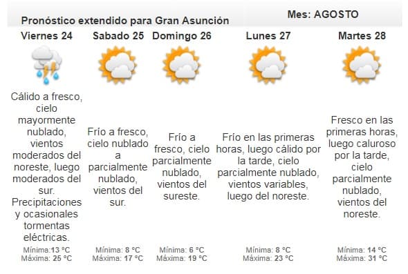 La Dirección de Meteorología pronostica que esta jornada se presentará fría a cálida. No se anuncian lluvias.