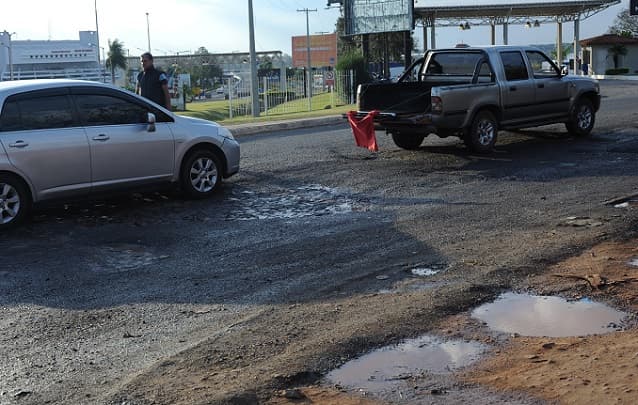 Una de las principales arterias de Luque está en ruinas. La zona se halla repleta de baches y exhibe una imagen lamentable para los extranjeros que visitan por primera vez el país.