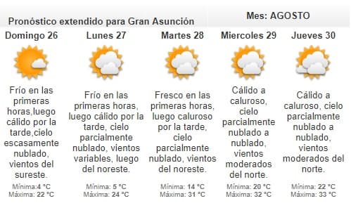 Desde la Dirección de Meteorología anuncian una jornada fresca a cálida, con vientos del sur.