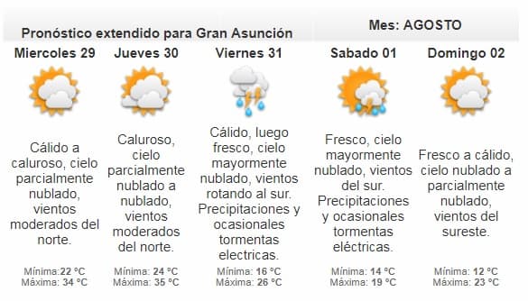 La Dirección de Meteorología pronostica que esta jornada se presentará fría a cálida. Los vientos soplarán del sector noreste.