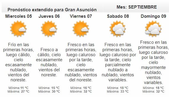 La Dirección de Meteorología pronostica una jornada fresca a cálida. No se pronostican lluvias.
