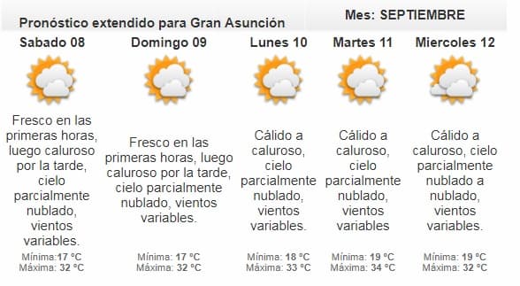 Según la meteoróloga Ruth González la jornada se presentará cálida en gran parte del territorio nacional. Sin embargo, para el domingo se espera un ambiente fresco durante las primeras horas, para luego tornarse caluroso.