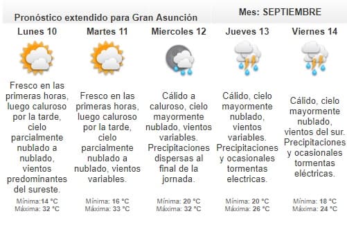 Según el reporte del meteorólogo de turno, Carlos Santacruz, se espera que la misma condición climática continúe durante el lunes y martes. Mientras que para el miércoles se anuncian ocasionales tormentas eléctricas.