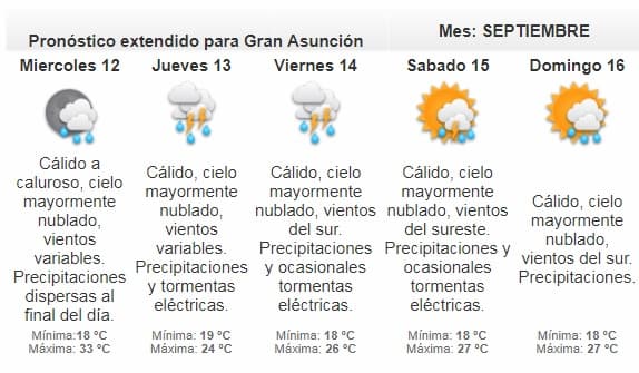 Según el meteorólogo de turno, Carlos Santacruz, la jornada se presentará cálida en gran parte del territorio nacional, y la probabilidad de lluvias es baja.