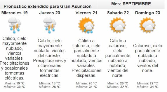 Según el meteorólogo de turno, Carlos Santacruz, la probabilidad lluvias es baja, sin embargo, se esperan precipitaciones desde el miércoles en gran parte del territorio nacional.