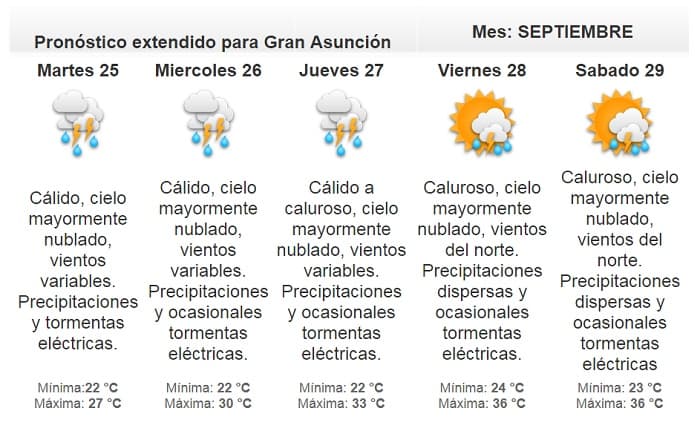 Según manifestó la meteoróloga de turno, Violeta González, se espera el ingreso de un sistema de tormentas que afectarían inicialmente el sur del país, para luego desplazarse a los demás departamentos de la región Oriental y el bajo Chaco.