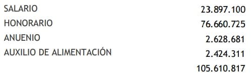En concepto de “anuenio” cobró G. 2.628.681 y finalmente su “auxilio de alimentación” fue de G. 2.424.311. El total llega a los G. 105.610.817.