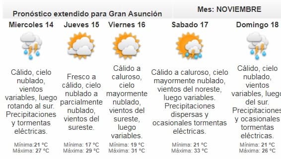 Según el meteorólogo de turno, Asmad Dami, la jornada será extremadamente calurosa e ingresaría un sistema de tormentas de Argentina, por lo que se esperan lluvias para la tarde.