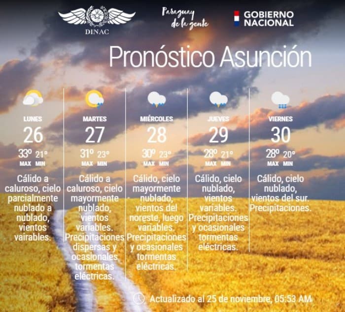 Desde la Dirección de Meteorología anunciaron que el ambiente para este domingo será cálido a caluroso con el cielo escasamente nublado.