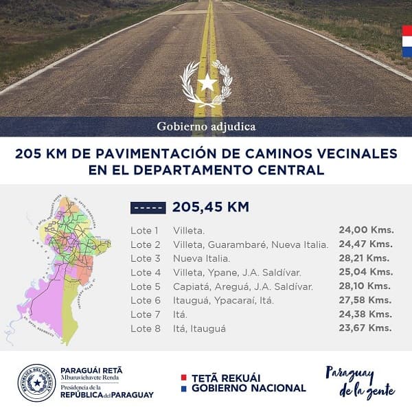 Se adjudicarán ocho lotes que incluirán a las ciudades de Villeta, Guarambaré, Nueva Italia, Ypané, J.A Saldívar, Capiatá, Areguá, Itaguá e Ypacarai.