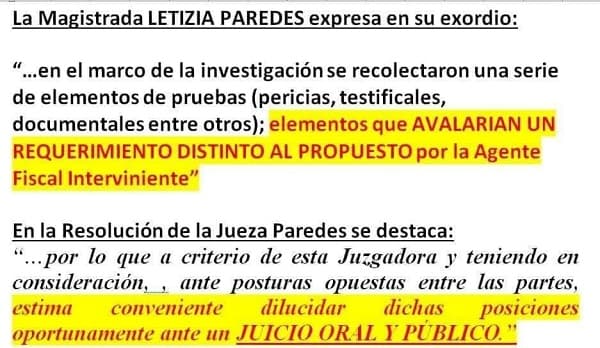 En el exordio la Jueza expresa: “…en el marco de la investigación se recolectaron una serie de elementos de pruebas (pericias, testificales, documentales, entre otros); elementos que avalarían un requerimiento distinto al propuesto por la agente fiscal interviniente”.