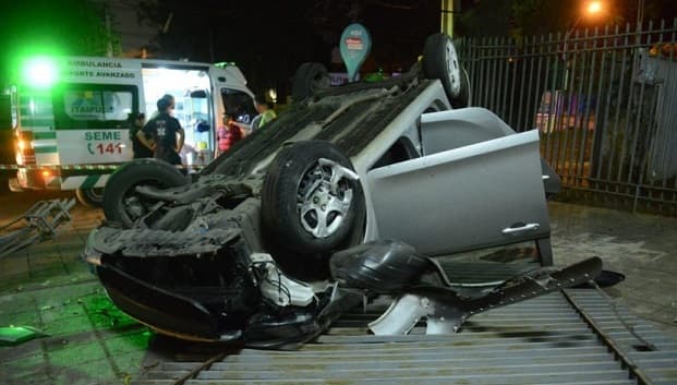 Un guardia de seguridad, identificado como Blas Cáceres, mencionó que vio cuando la joven perdió el control del rodado tras impactar con el paseo central, obligándola a realizar maniobras en zig zag intentando controlar el vehículo, sin embargo, no pudo evitar volcar y atropellar la reja de un comercio.