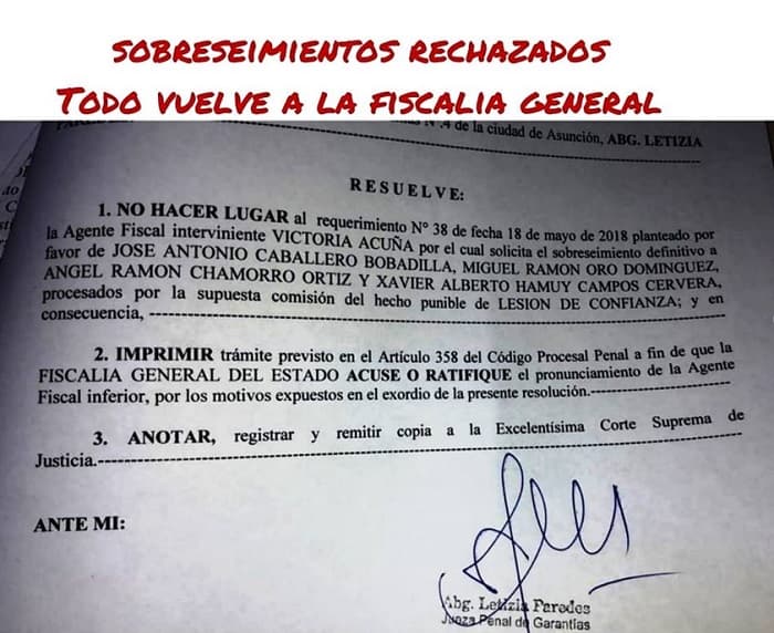 Acuña había pedido el sobreseimiento de los procesados y directivos de la Caja Bancaria, sin embargo una juez falló en contra.