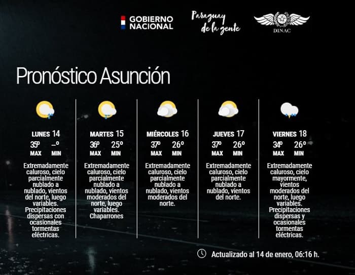 Según Informaron desde la Dirección de Meteorología, para este lunes, la máxima será de 35 grados, y en los próximos días sensaciones térmicas superarán los 40 grados en gran parte de nuestro país.