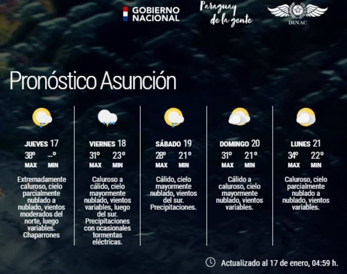 De acuerdo a lo que informó la Dirección de Meteorología, altas temperaturas se registrarán en todo el país y la sensación térmica alcanzará los 43°C en la región Oriental y 44°C en el chaco paraguayo.