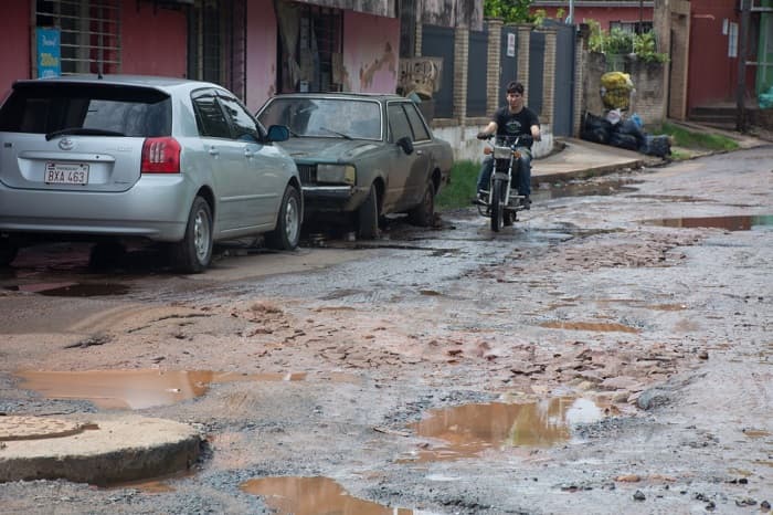 Calles de San Lorenzo están minadas de baches