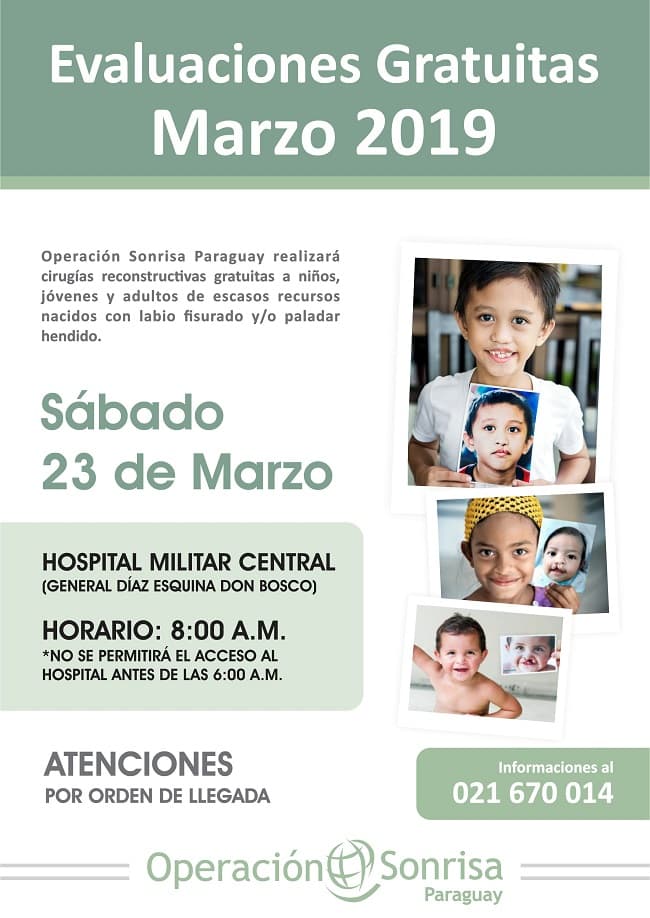 Los interesados pueden acercarse al Hospital Militar Central de Sajonia, ubicado sobre las calles General Díaz y Hernandarias, de Asunción, el sábado 23 de marzo desde las 8:00 horas para las evaluaciones totalmente gratuitas.
