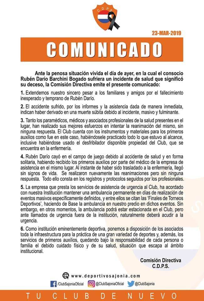 El comunicado del Sajonia se encuentra abajo: